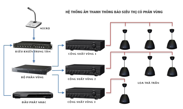 Các thiết bị thường được sử dụng trong hệ thống âm thanh thông báo siêu thị và trung tâm thương mại: